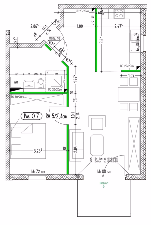 Wohnzimmer, Schlafzimmer, Küche, Bad